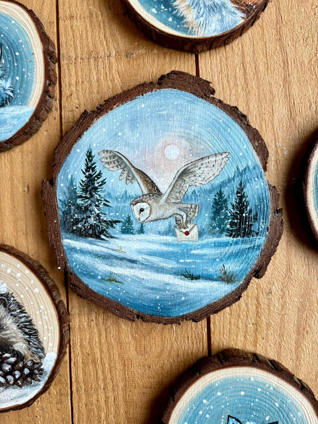 ❄️💙 Peinture Unique sur rondin – " Derniers Rêves " ❄️💙