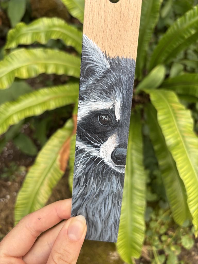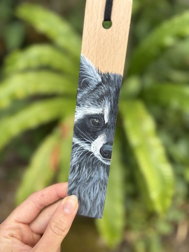 🌿 Marque-pages en bois de hêtre – Raton laveur 🎨