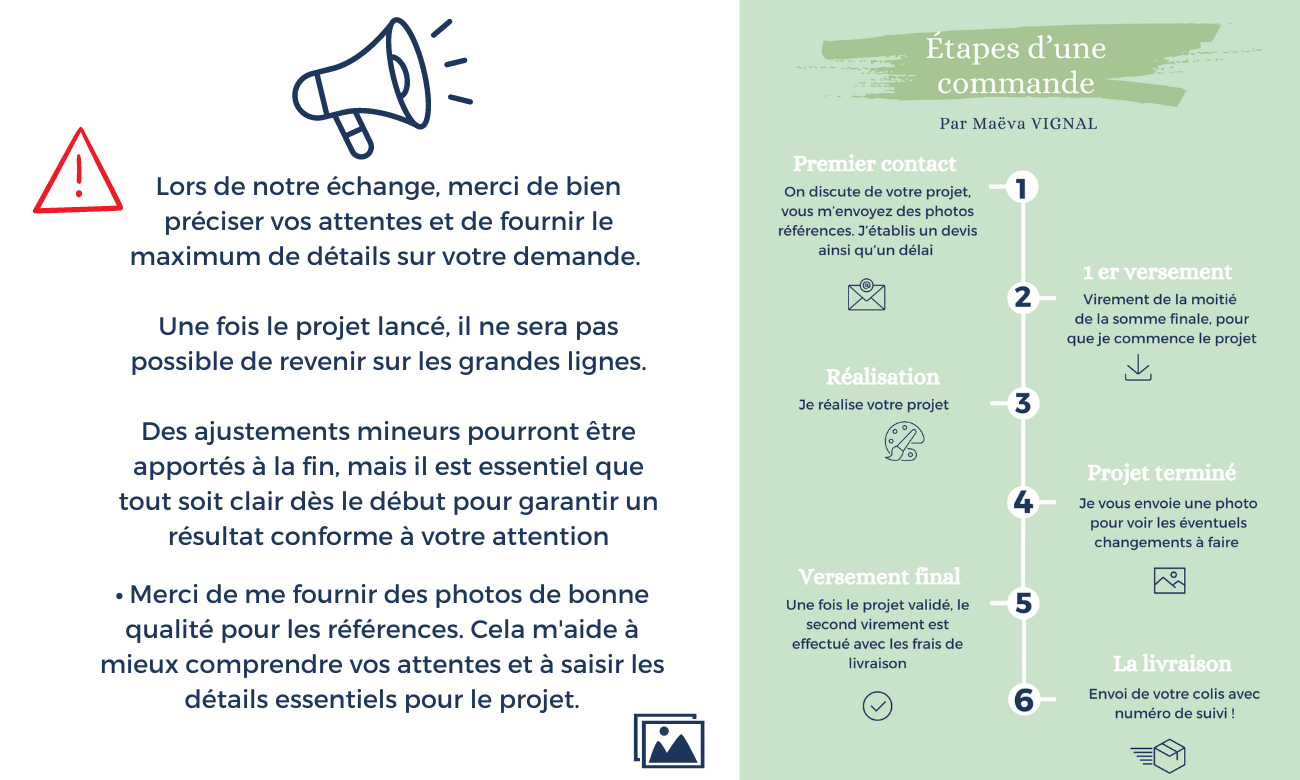 Pour réaliser votre projet, veuillez me contacter par e-mail : maeva.vignal.art@gmail.com