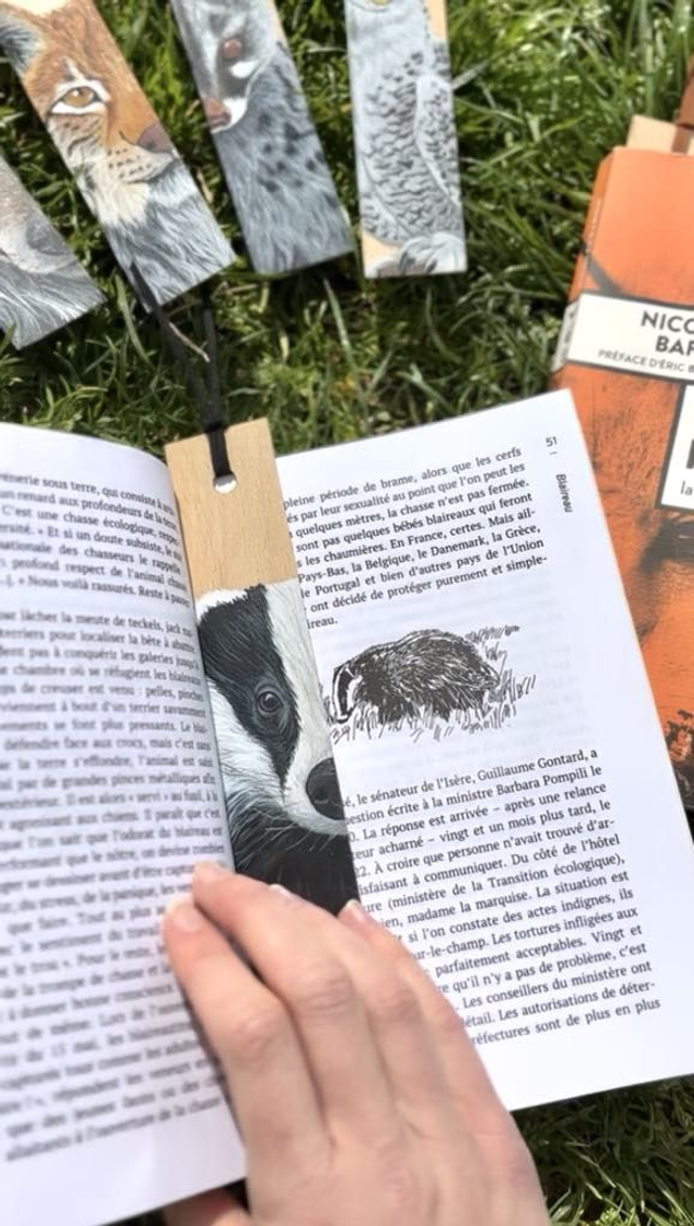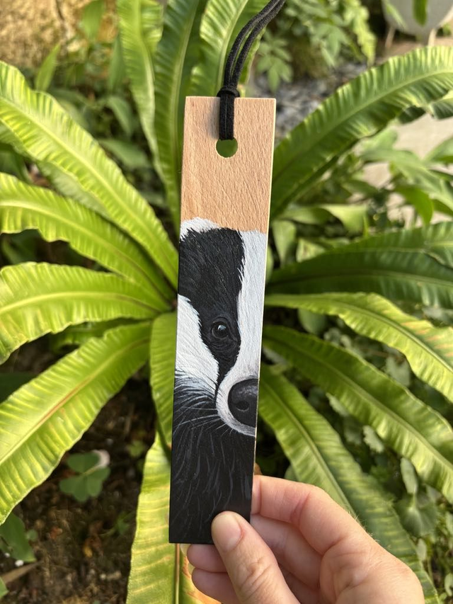 🌿 Marque-page en bois de hêtre – Blaireau européen 🎨